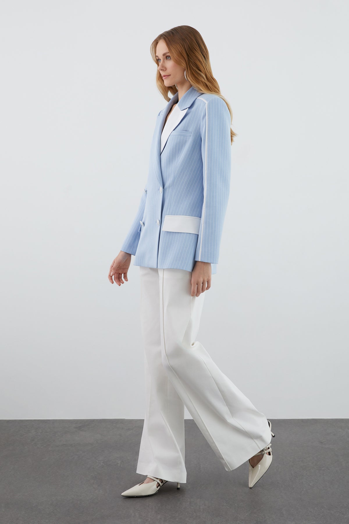 Tek Cep Detaylı Ceket Ve Palazzo Pantolonlu Takım
