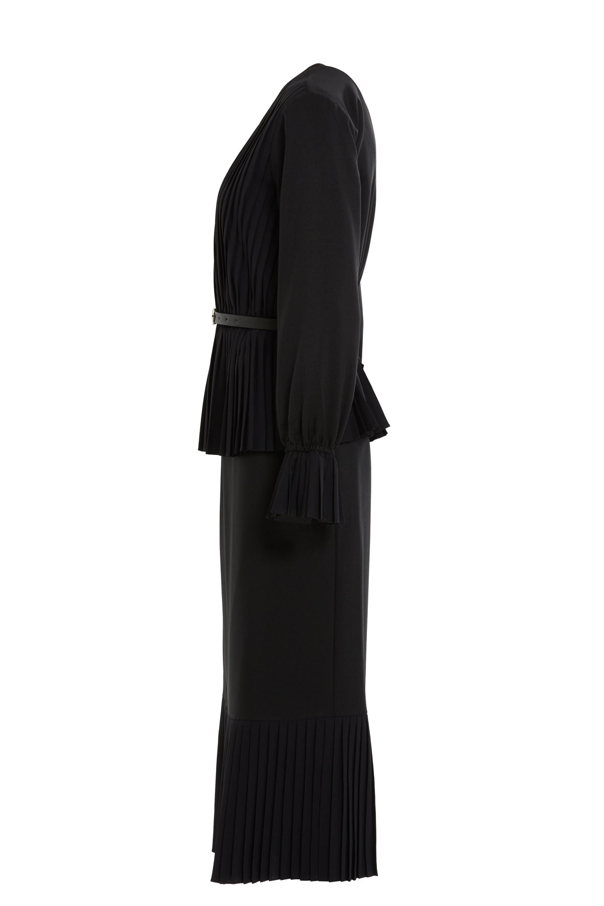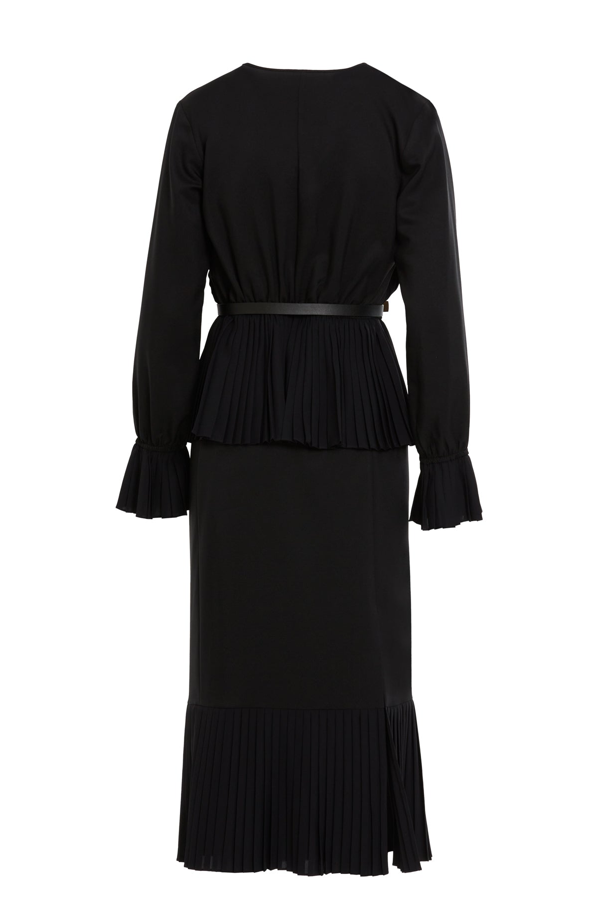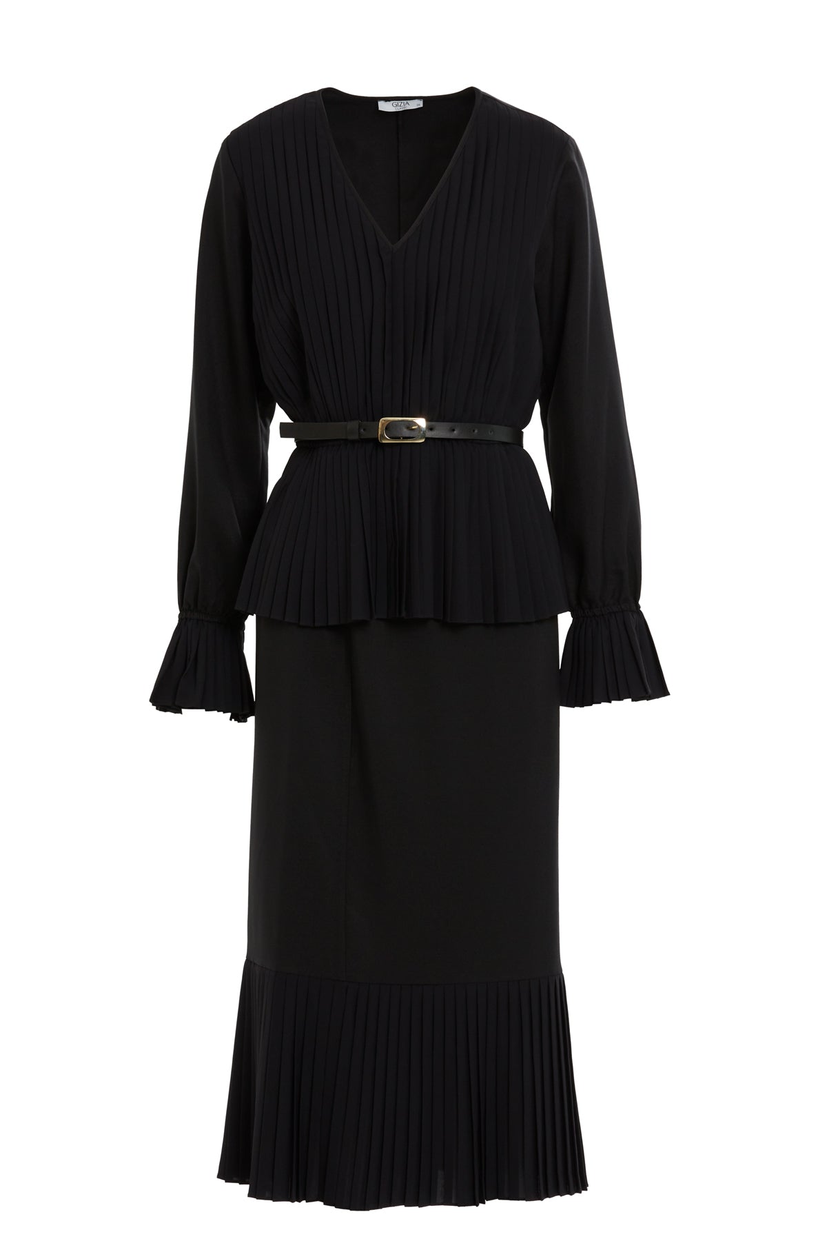 Beli Kemerli Pliseli Etek Ve V Yaka Bluzlu Takım
