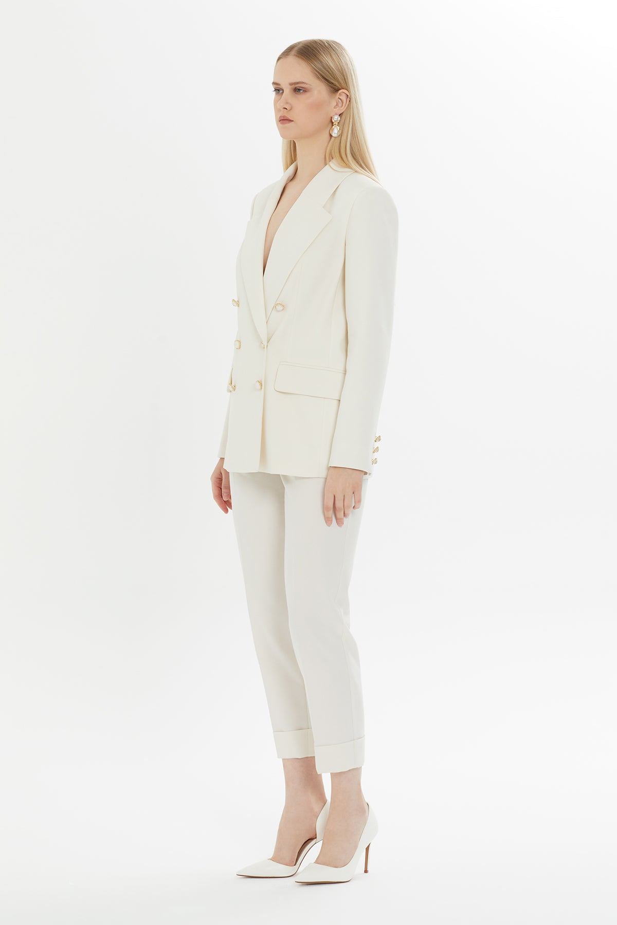 Kruvaze Kapamalı Ceket Ve Palazzo Pantolonlu Takım