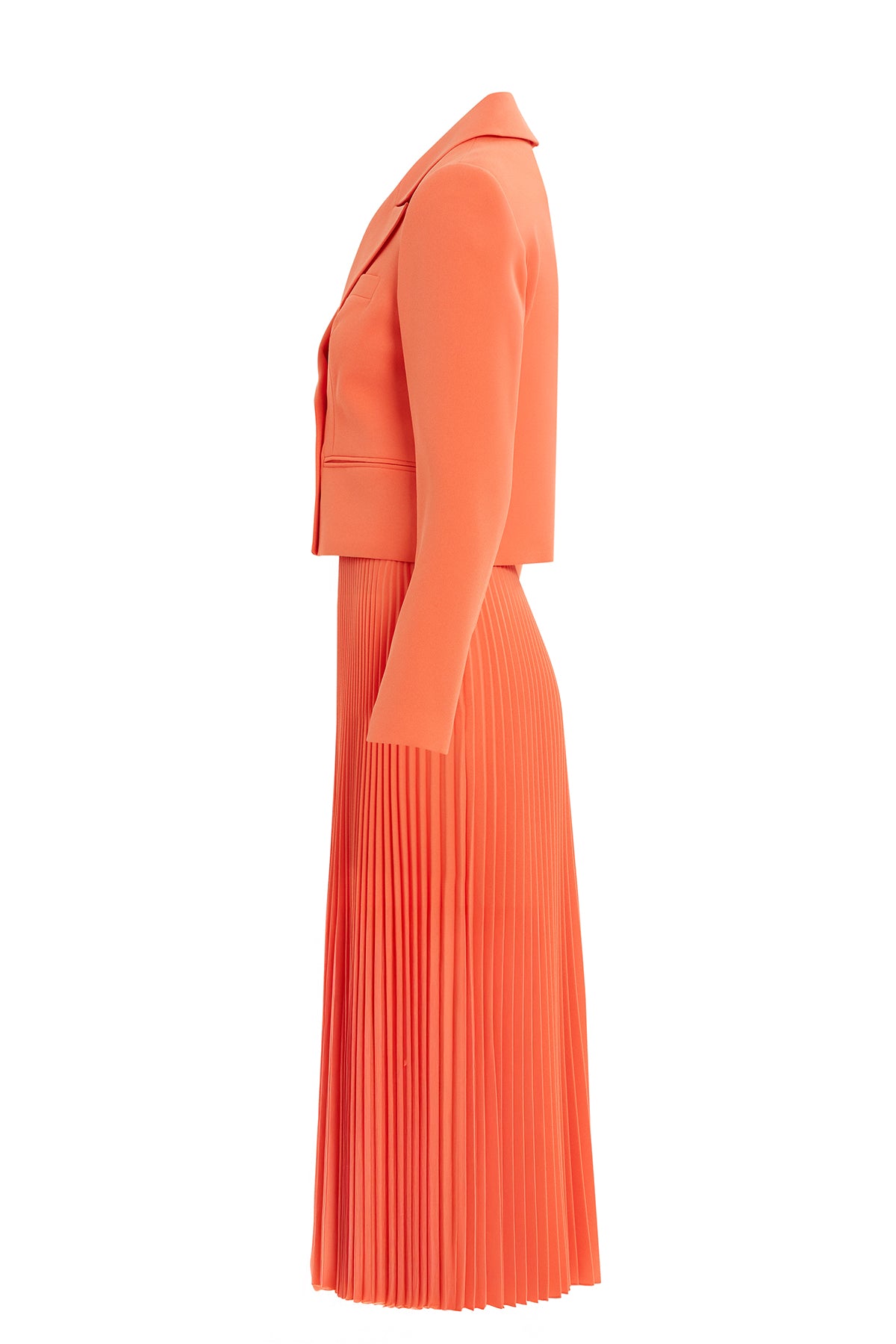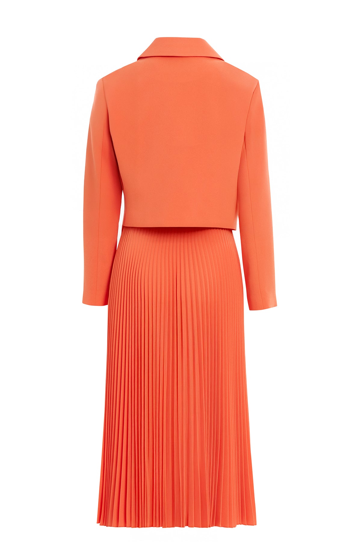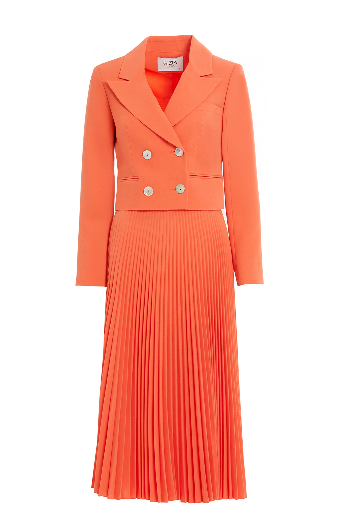 Kruvaze Kapamalı Eteği Pliseli Kısa Ceketli Sedef Düğmeli Kadın Takım