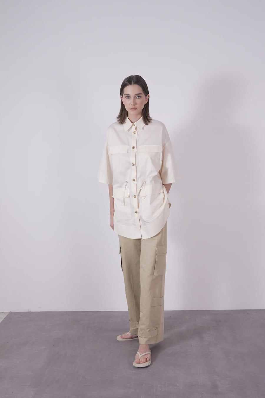 Süs Cep Kapaklı Önden Pilili Metal Düğmeli Pamuk Gömlek