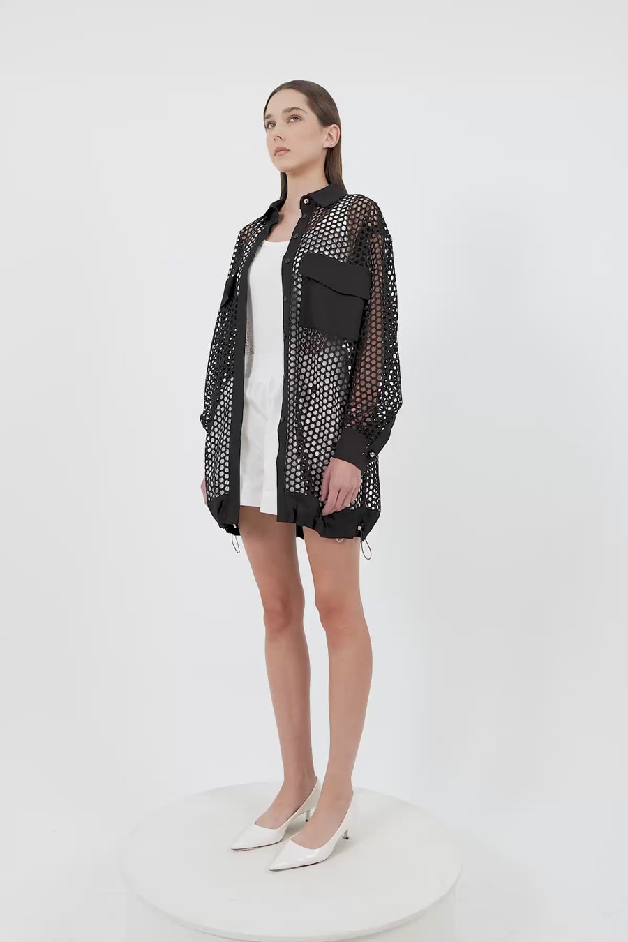Kolları Nevrür Detaylı Transparan Şifon Gömlek