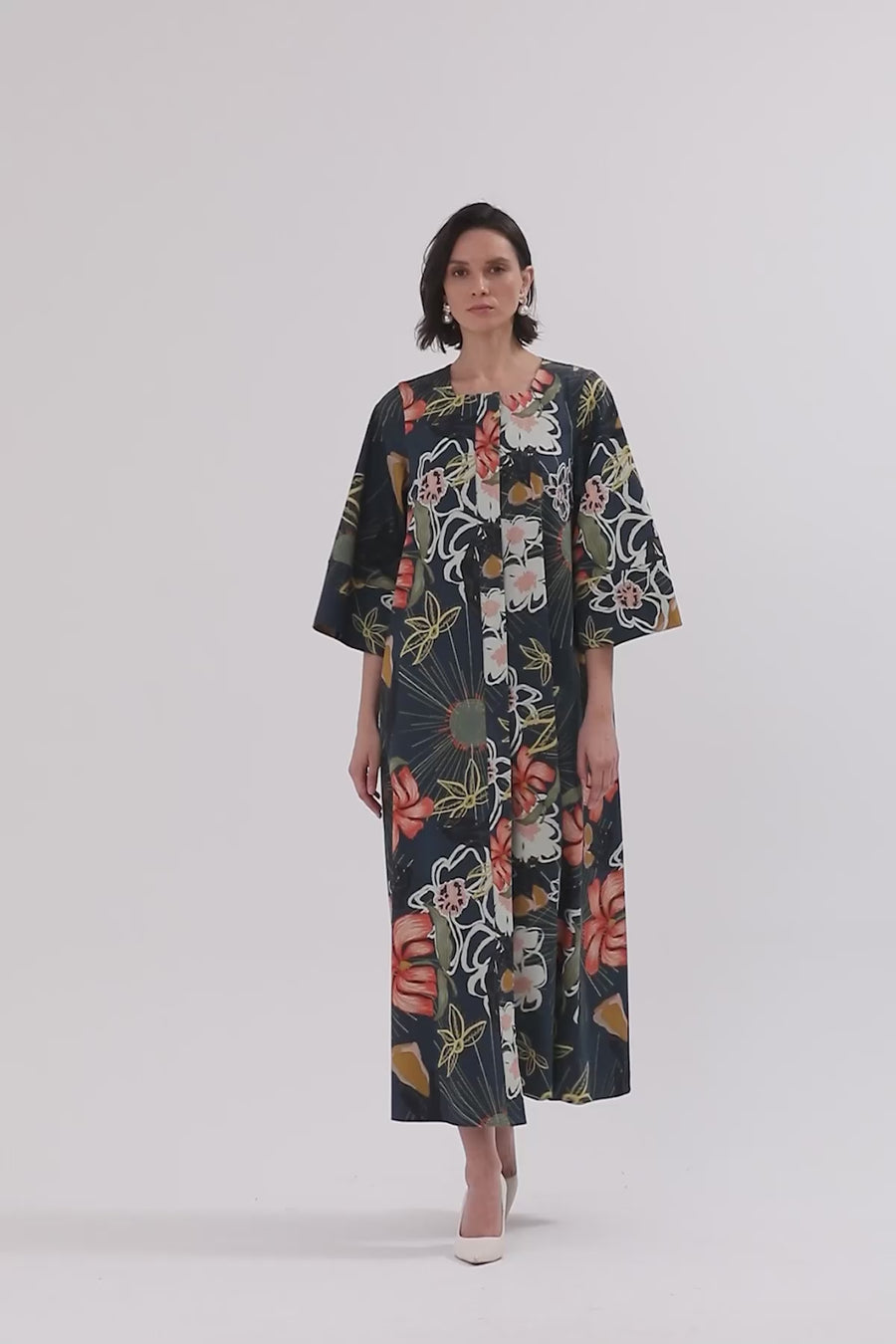 Seyyar Kuşaklı Düğme Kapamalı Midi Elbise