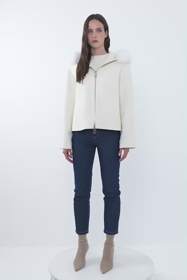 Kapüşonu Kürklü Kutu Form Kaşe Kaban