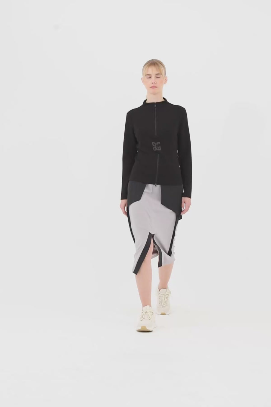 Yakası Fermuarlı G Logo Baskılı Bluz