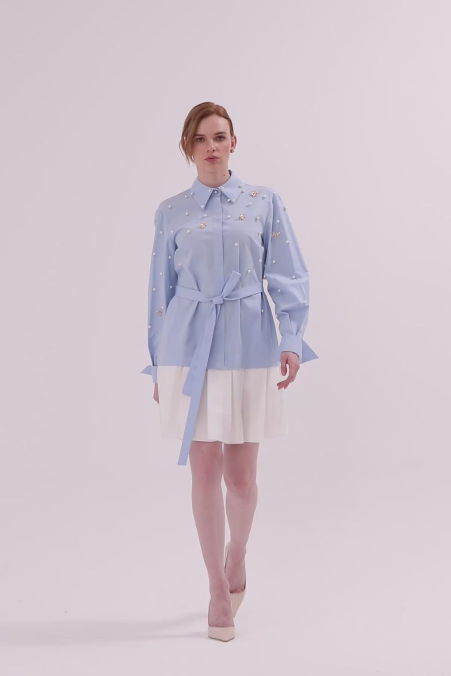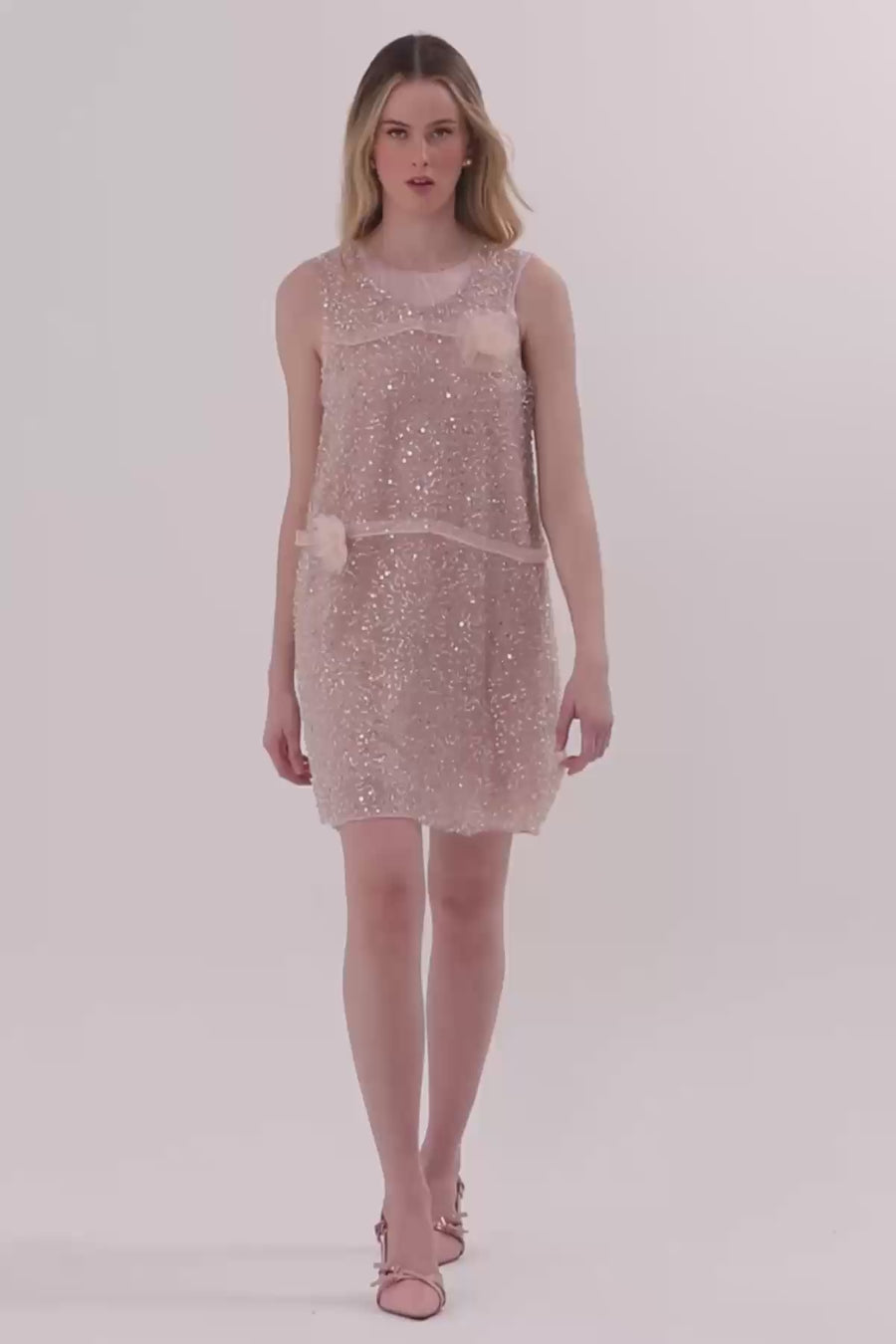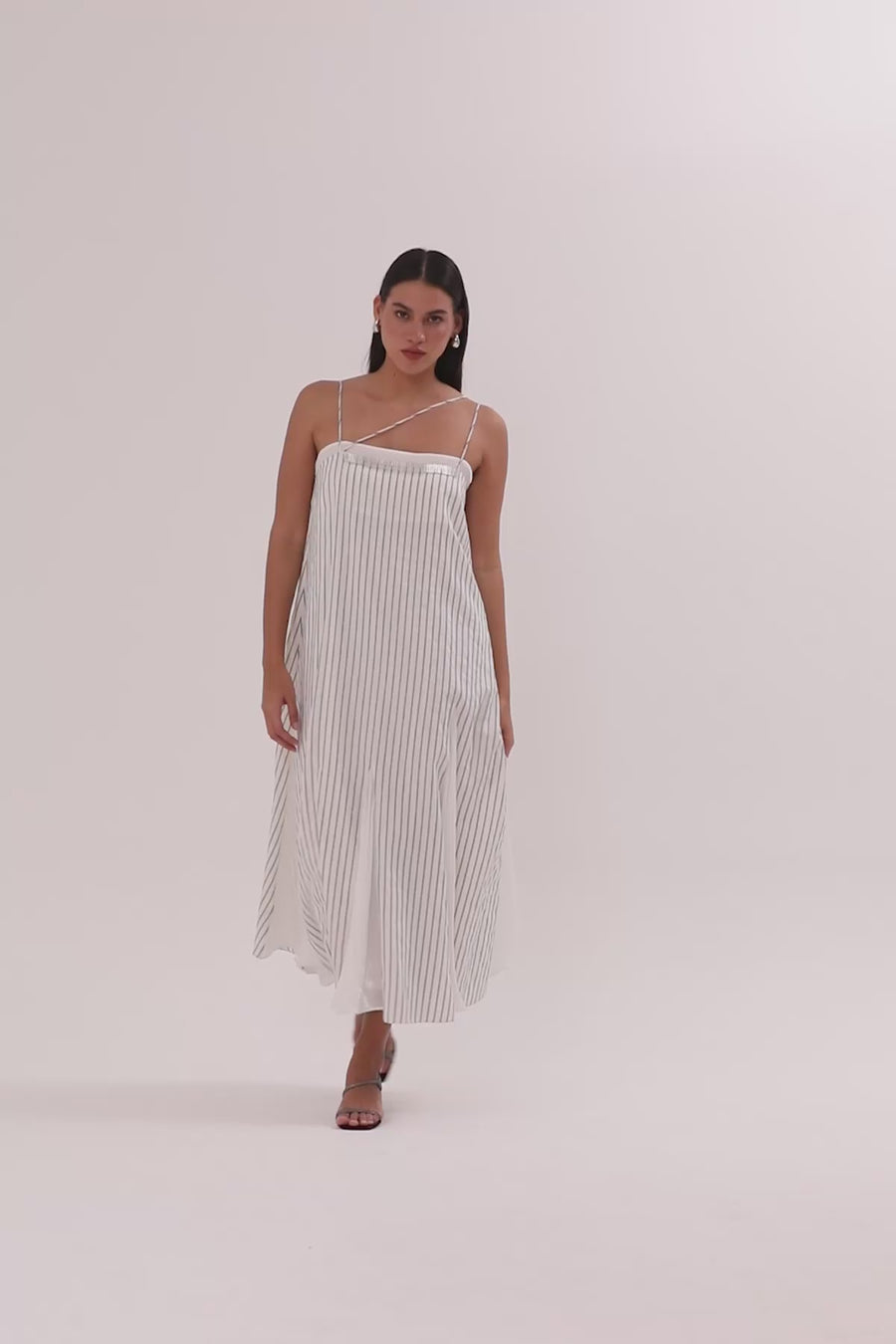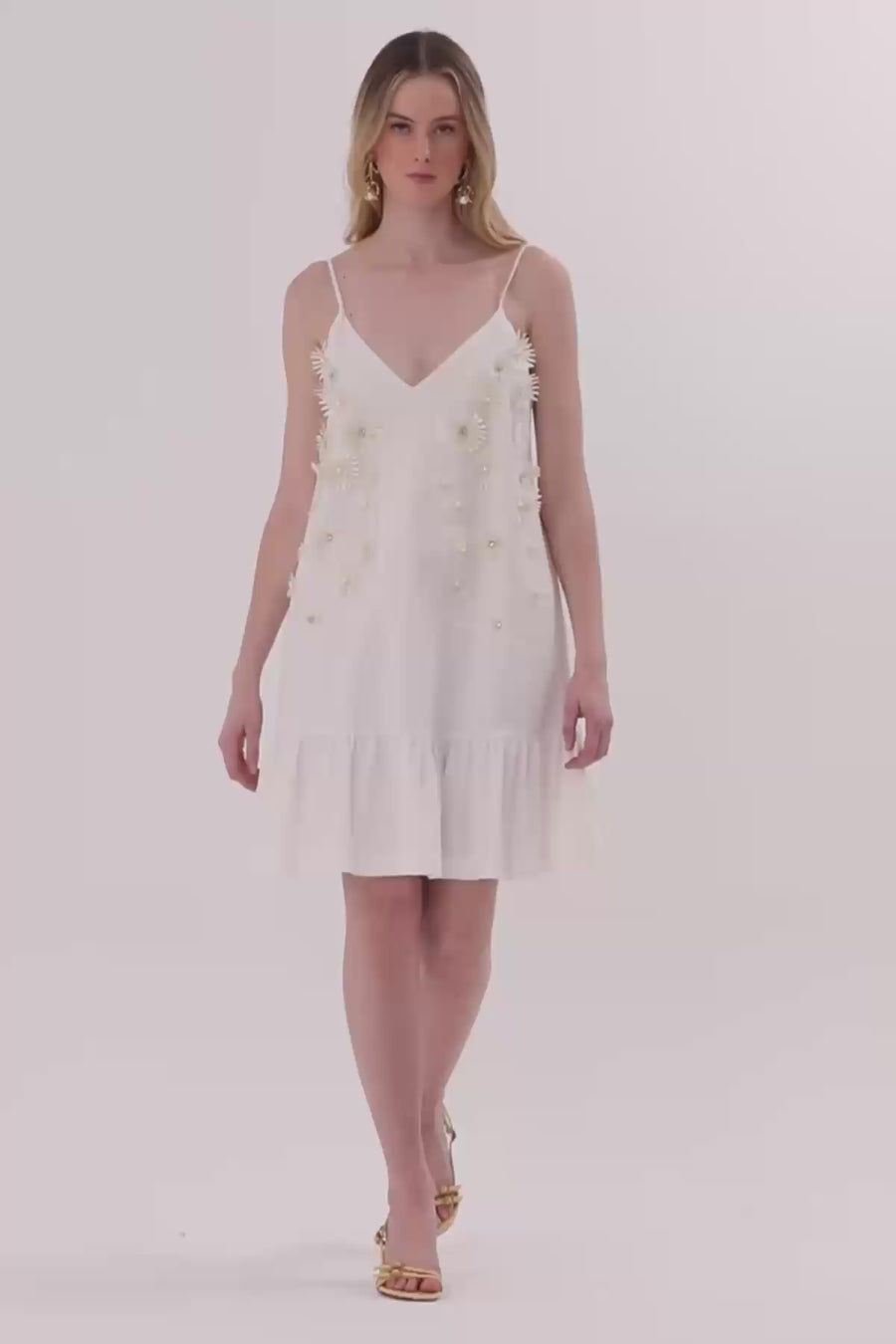 Asimetrik Kare Yaka İşlemeli Kemik Elbise