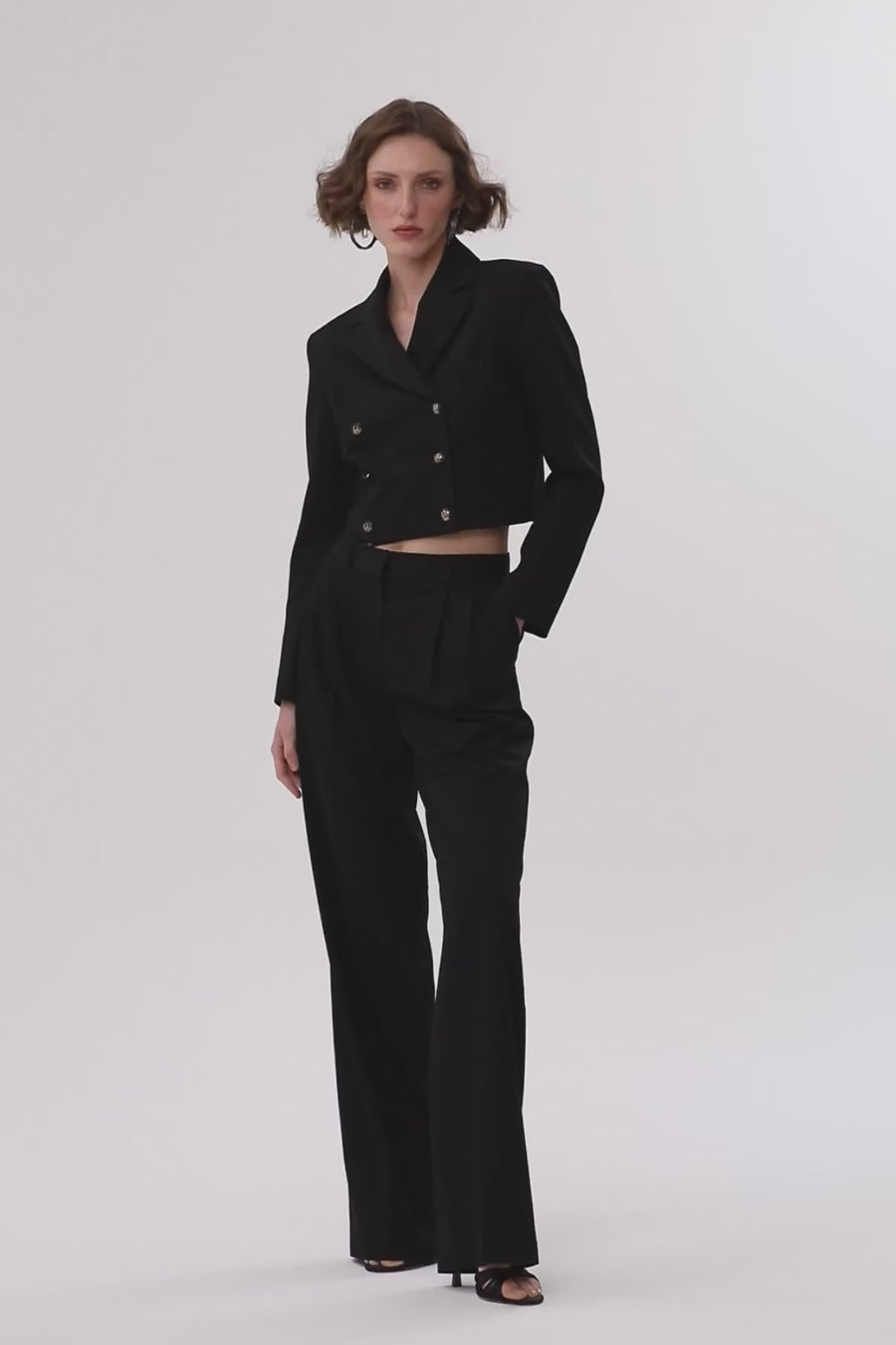 Kruvaze Kapamalı Kısa Ceketli Palazzo Pantolonlu Takım