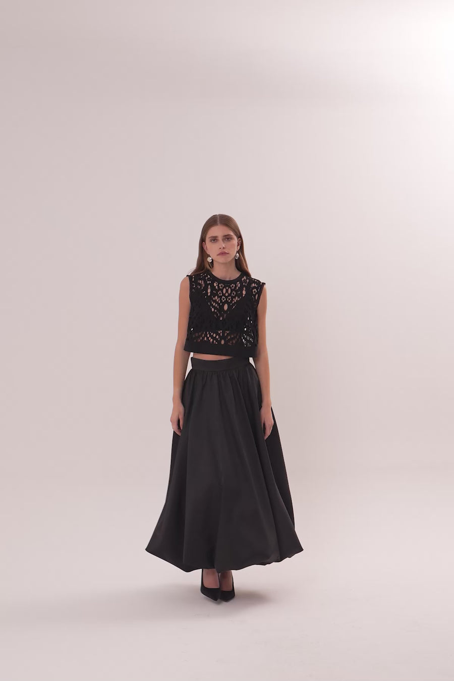Tül Detaylı Parlak Pul Detaylı Bluz