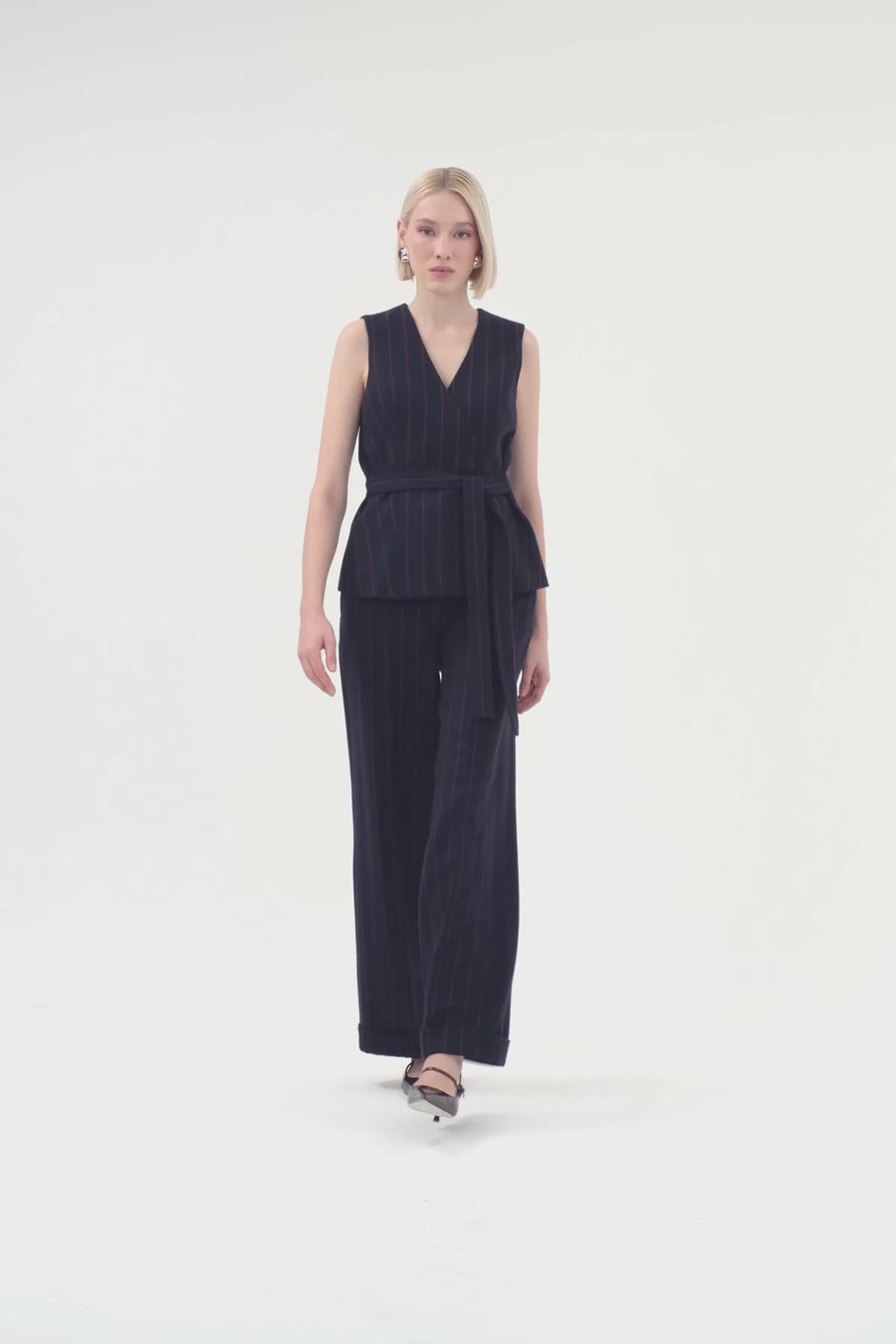 Kruvaze Kapamalı Kemerli Ceket Ve Palazzo Pantolon