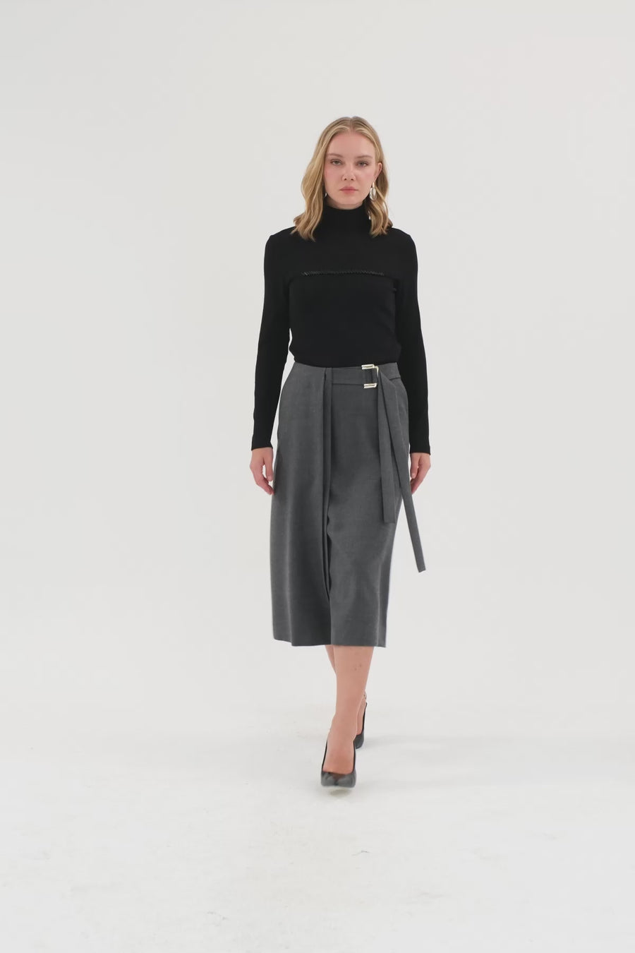 Arka Orta Fermuarlı Ön Kuşak Tokalı Kadın Etek