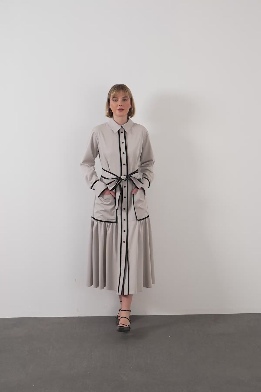 Maskülen çizgilerden ilham alan gömlek midi elbise, modern kadının şehirli stiline sofistike yorum katar. Düğme detayları, net yakalar, akıcı formlar sayesinde gömlek yaka modeller gündüz ofis şıklığından hafta sonu kombinlerine uzanan geniş kullanım alanına sahiptir. Minimal ama güçlü estetik arayanlar için vazgeçilmezdir.
