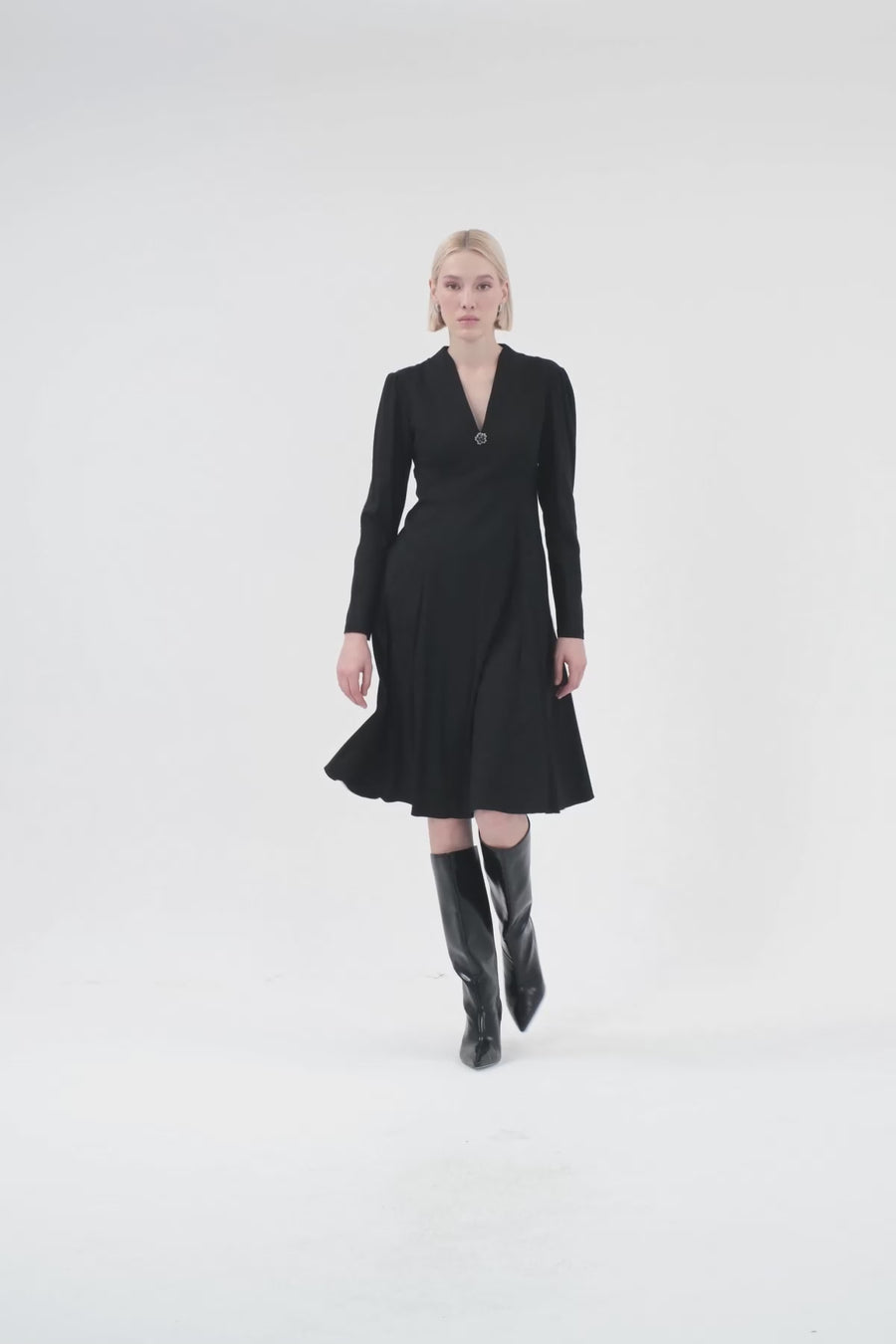 Uzun Kollu V Yakalı Midi Boy Elbise