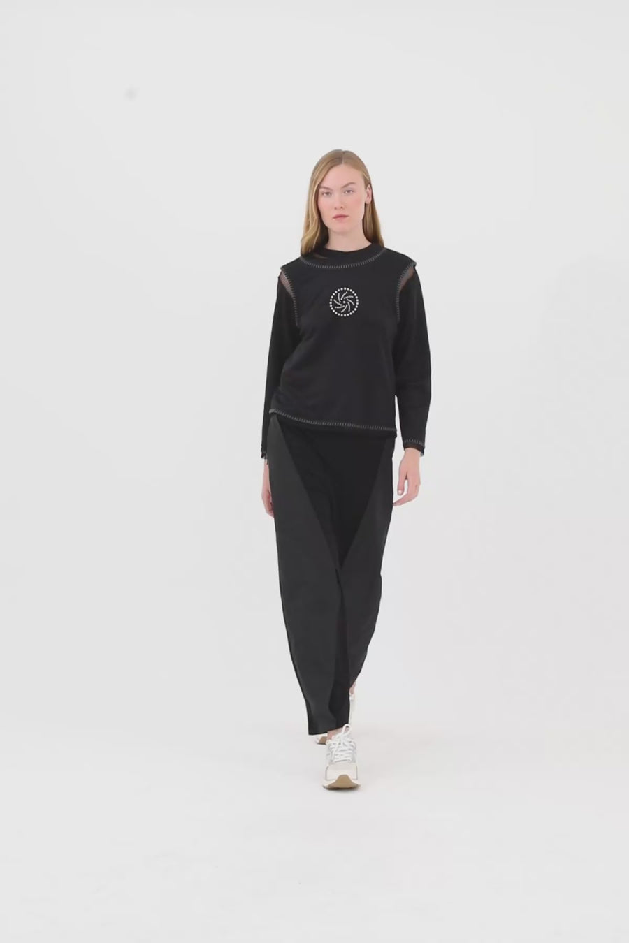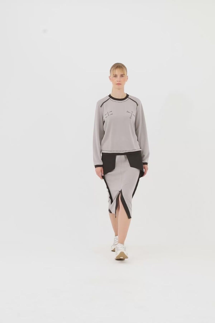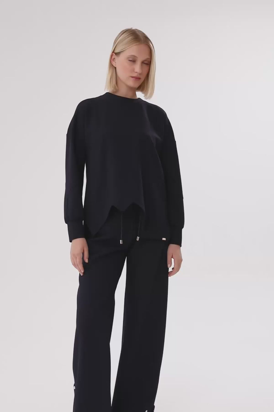 Yuvarlak Yakalı Asimetrik Kesim Sweatshirt