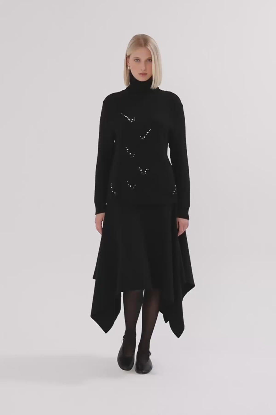 Boncuk İşlemeli Balıkçı Yaka Triko Kazak