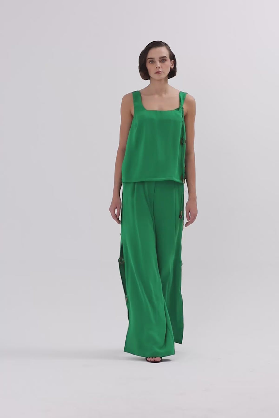 Arkadan Düğmeli Ceket Ve Palazzo Pantolonlu Takım