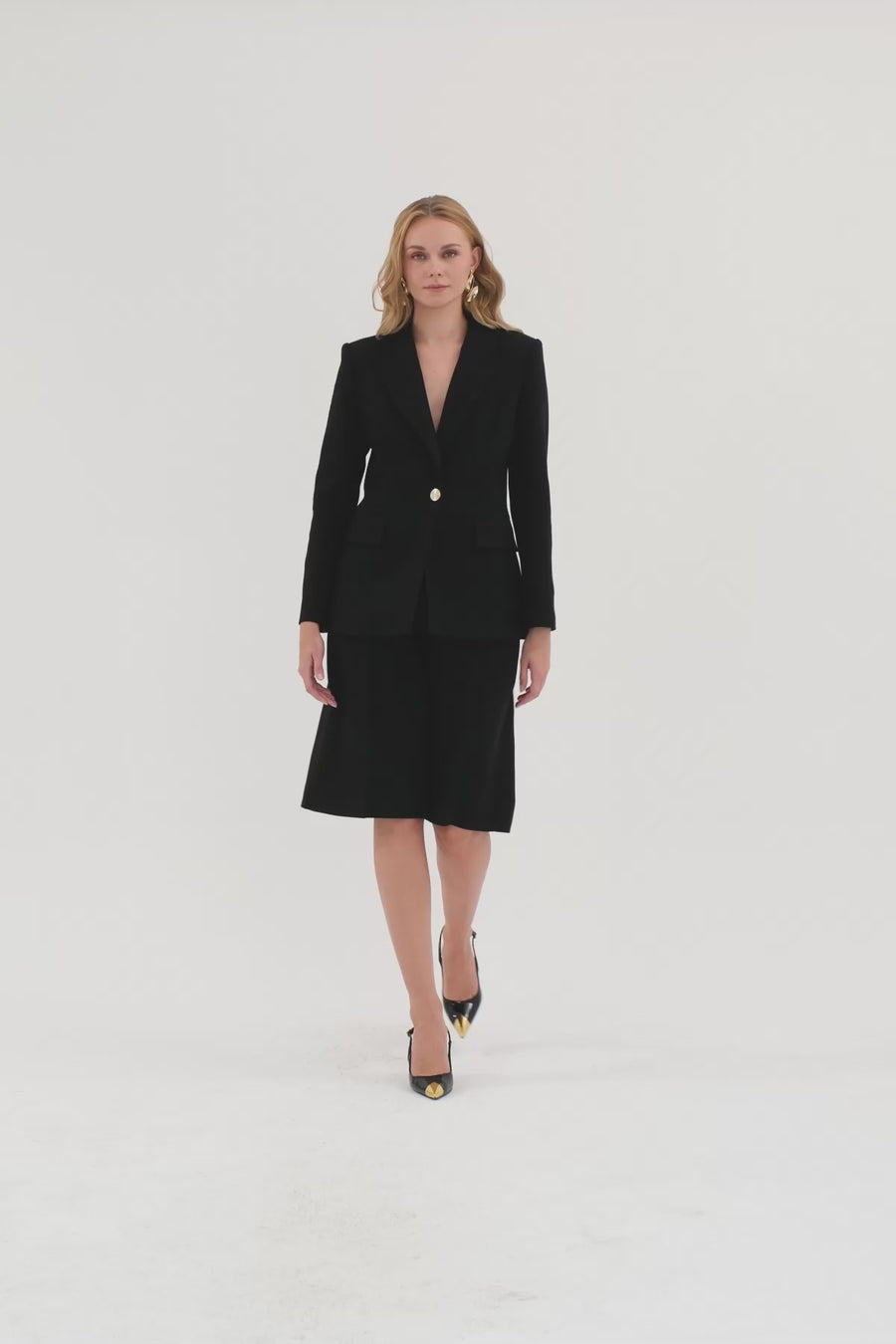 Erkek Yaka Düğme Kapamalı Kadın Ceket