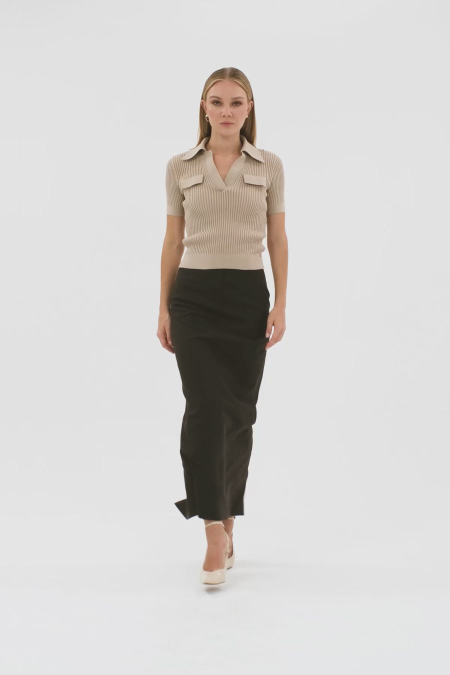 Gömlek Yakalı Düğme Kapamalı Ekru Kazak