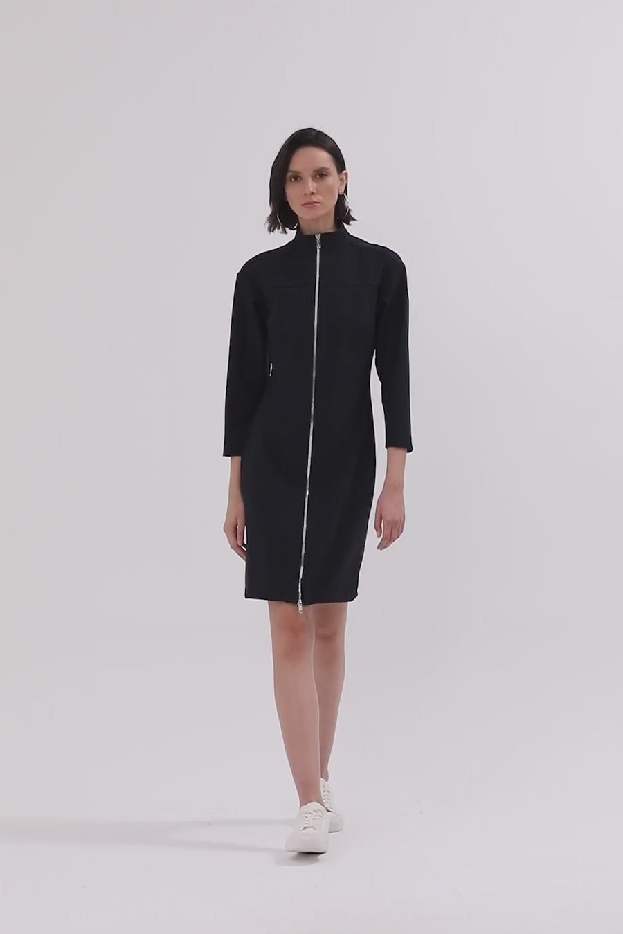 Fermuar Detaylı Uzun Kollu Kısa Elbise