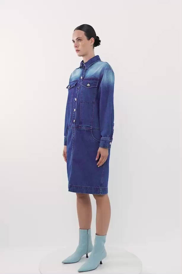 Arka Beden Etiket Detaylı Düğme Kapama Ara Boy Jean Ceket Elbise