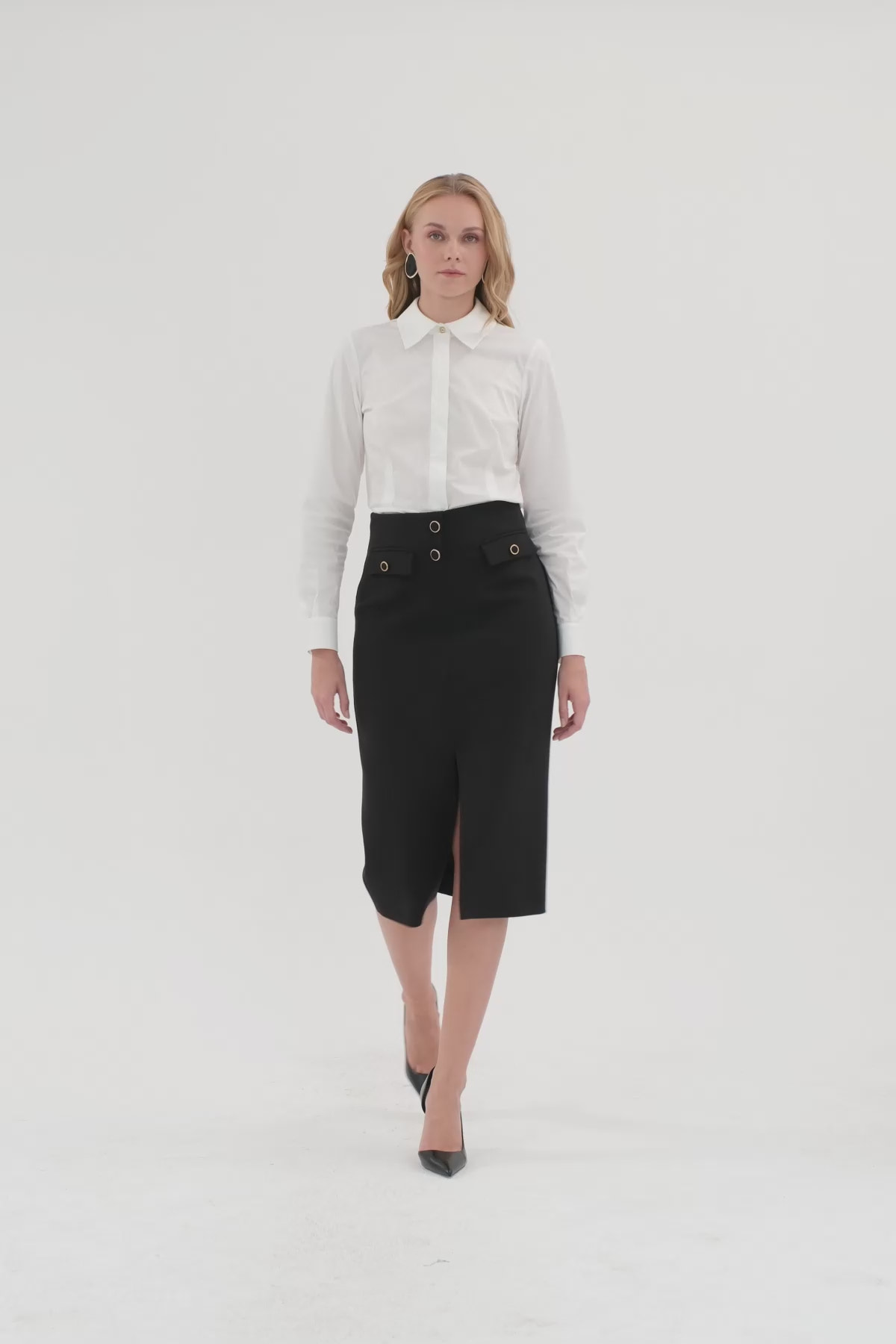 Arka Gizli Fermuarlı Düğmeli Kadın Etek