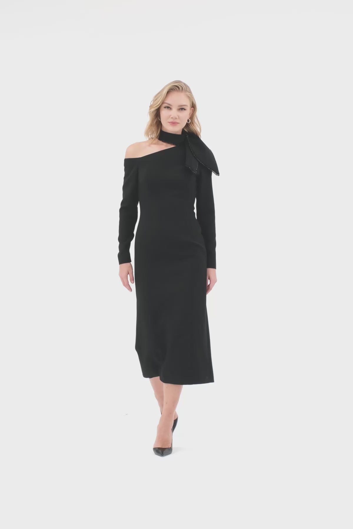 Arka Orta Ve Kollar Gizli Fermuarlı İşlemeli Elbise