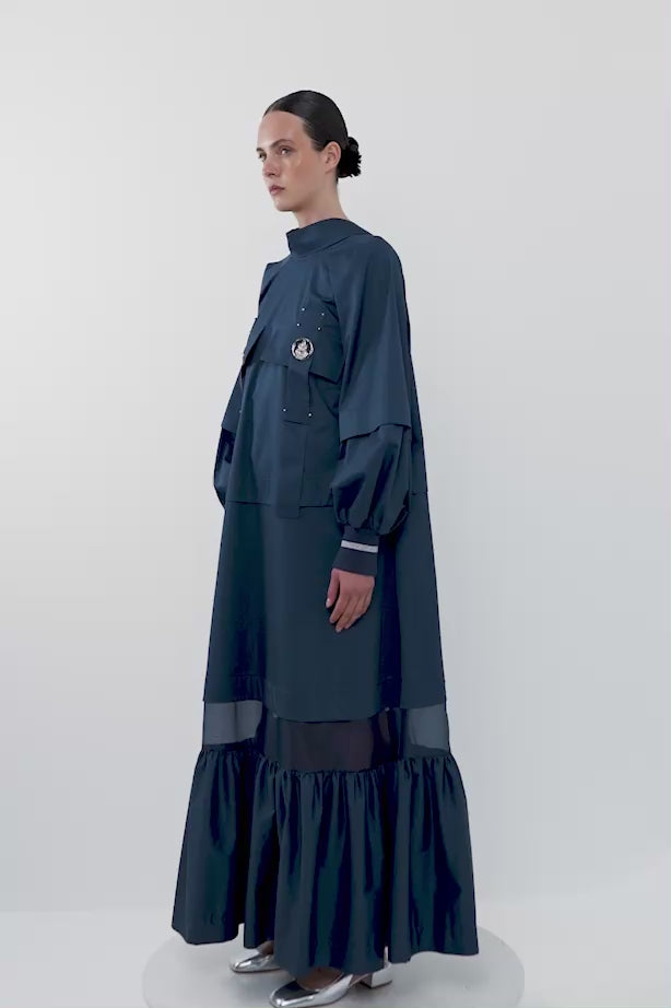 Arka Yaka Dekolteli Eteği Organze A Form Uzun Elbise
