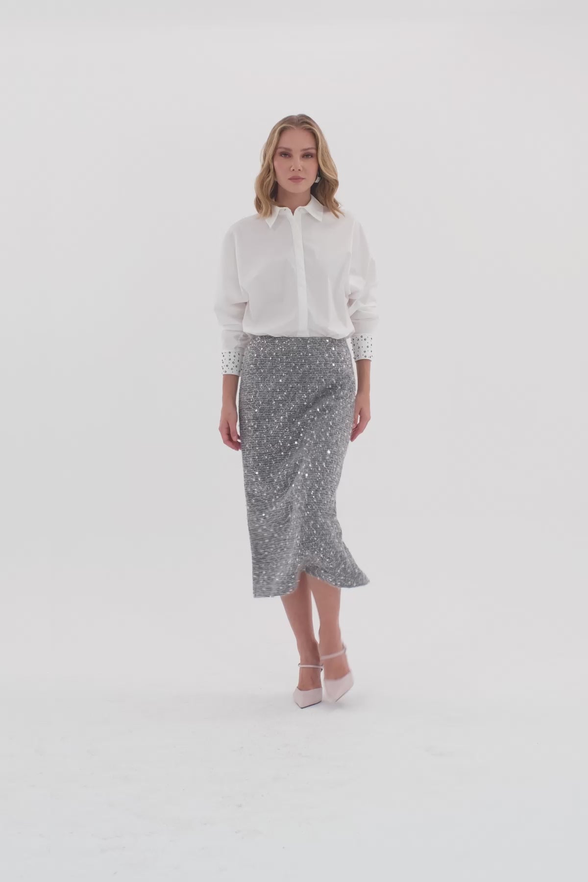 Arkadan Fermuar Kapamalı Yırtmaçlı Etek
