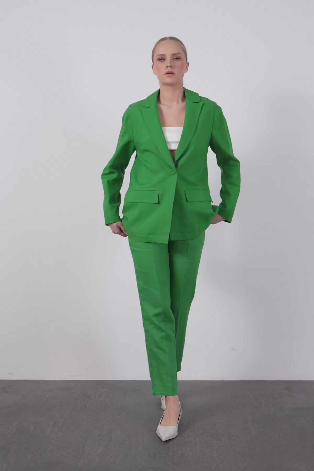 Arkadan Yırtmaçlı Uzun Kollu Koyu Keten Ceket