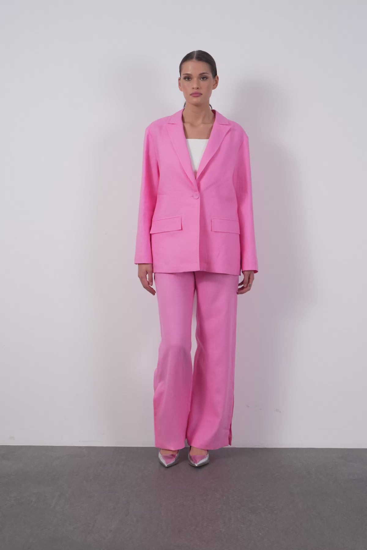 Arkadan Yırtmaçlı Uzun Kollu Koyu Keten Ceket