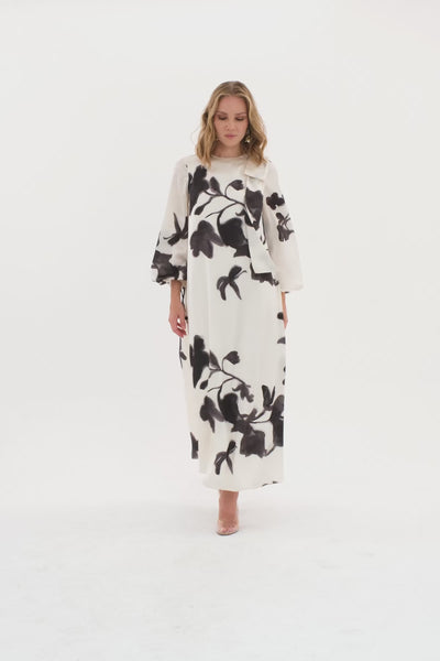 Arkası Düğme Kapamalı Volanlı Elbise