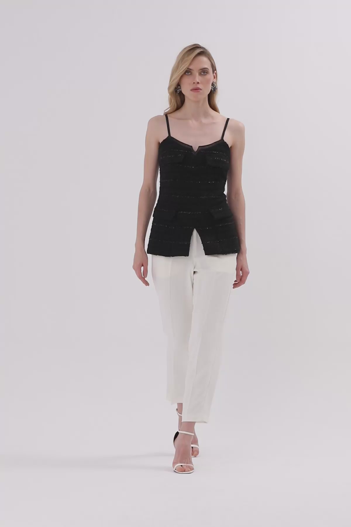 Arkası Fermuarlı Askılı Tüvit Bluz
