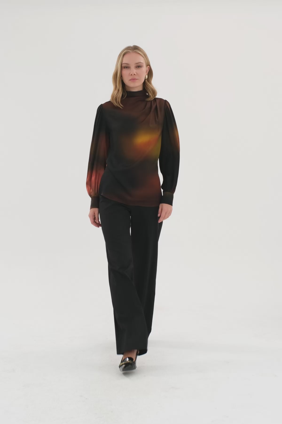 Arkası Gizli Fermuarlı Kolları Düğmeli Kadın Bluz