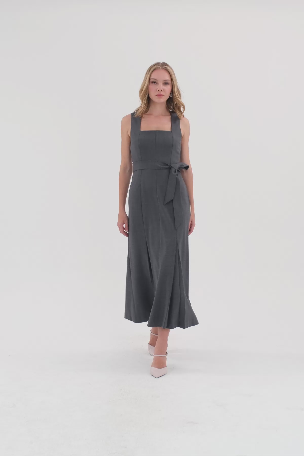 Arkası Gizli Fermuarlı Seyyar Kuşaklı Logolu Maxi Elbise
