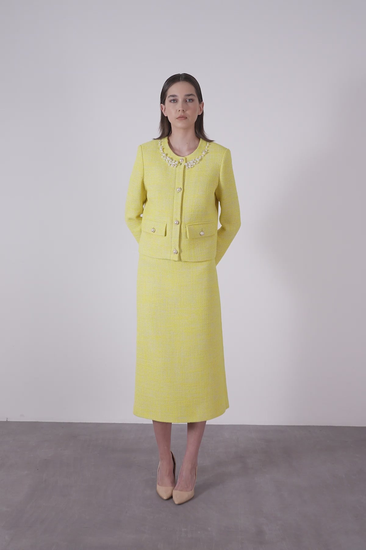 Arkası Yırtmaçlı Midi Tüvit Kumaş Etek