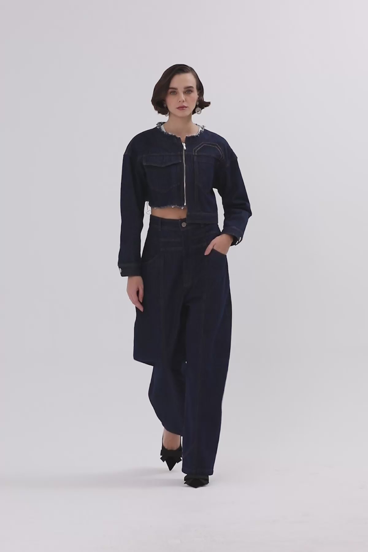 Asimetri Ve Püskül Detaylı Jean Ceket