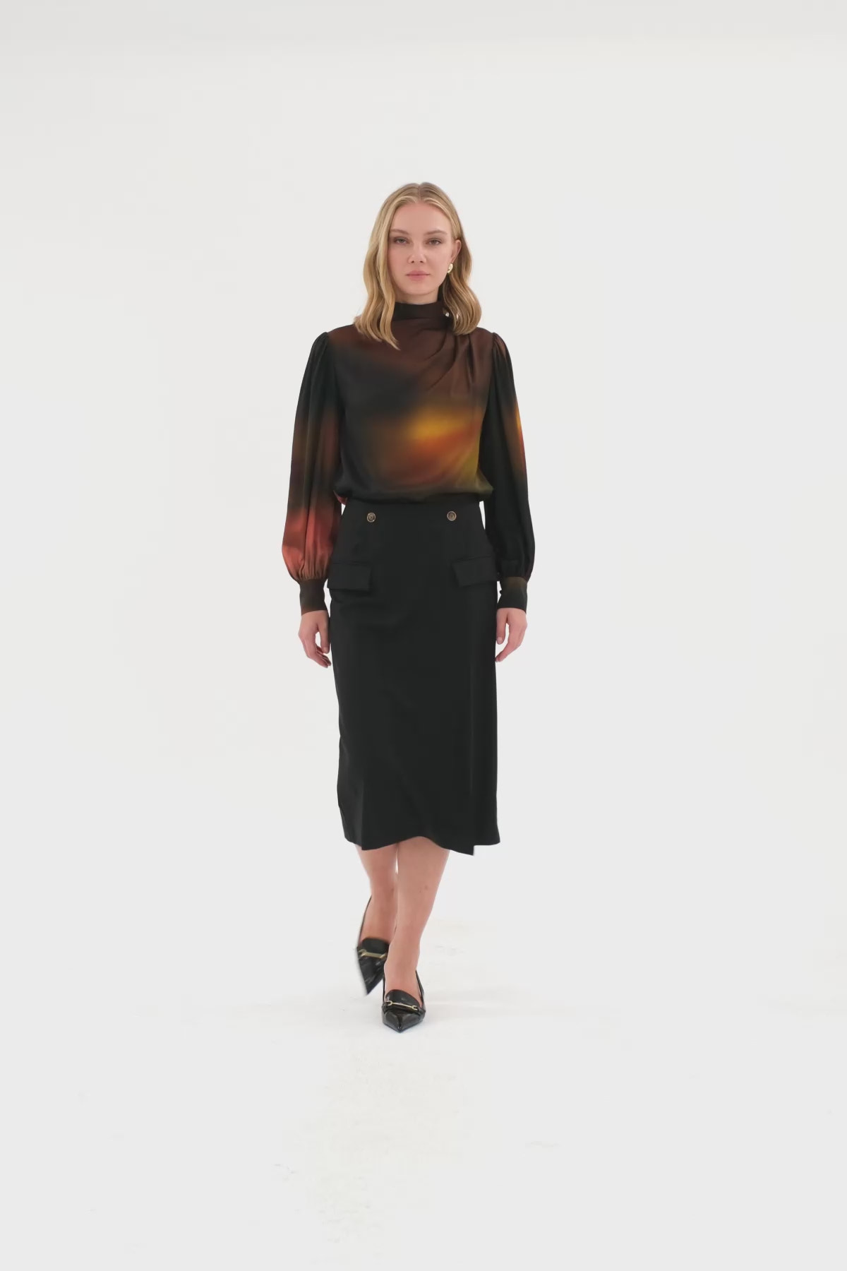 • Model Ölçüsü: Boy: 177 Cm Göğüs: 83 Cm Bel: 64 Cm Kalça: 93 Cm