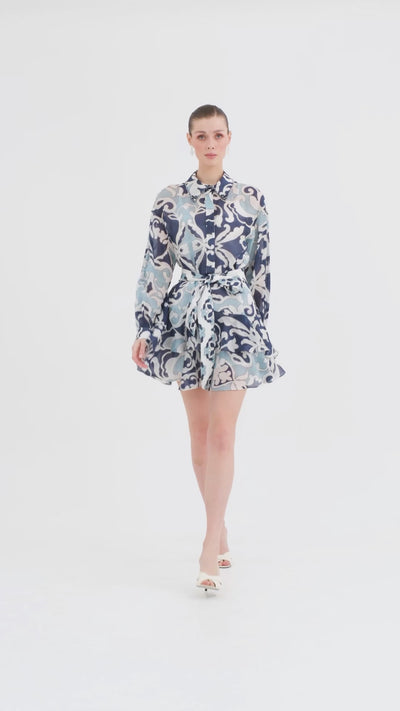 Asimetrik Volan Detaylı Mini Elbise