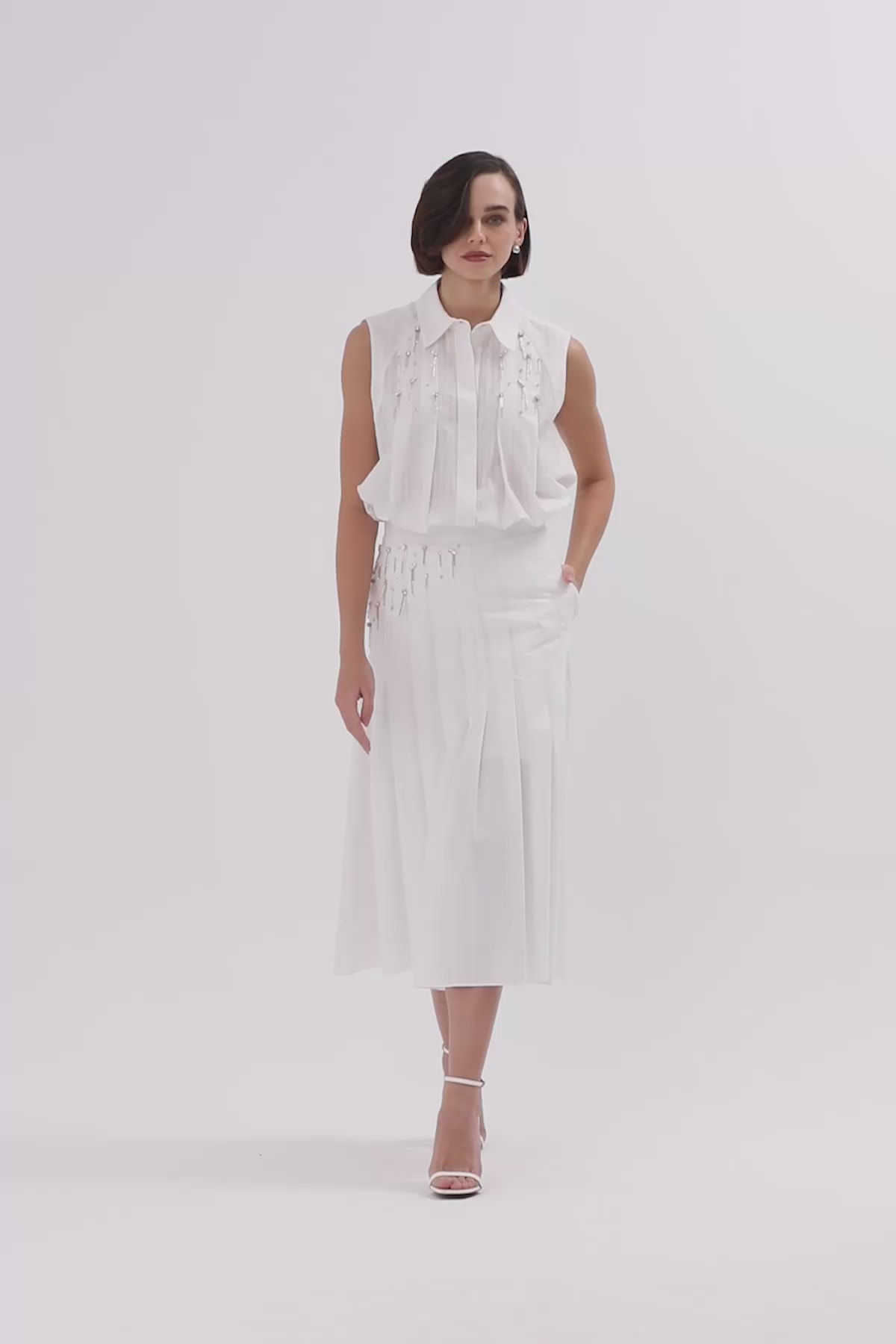 Beli İşlemeli Pileli Midi Boy Etek