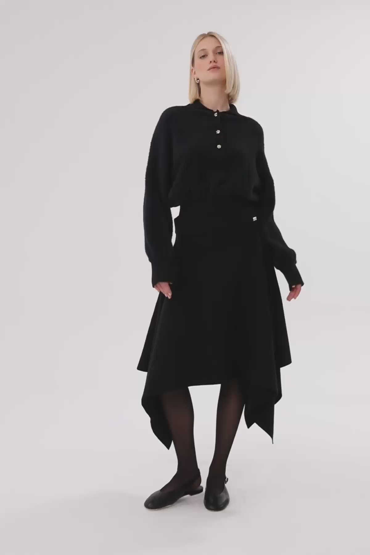 Beli Lastikli Asimetrik Kesim Triko Etek