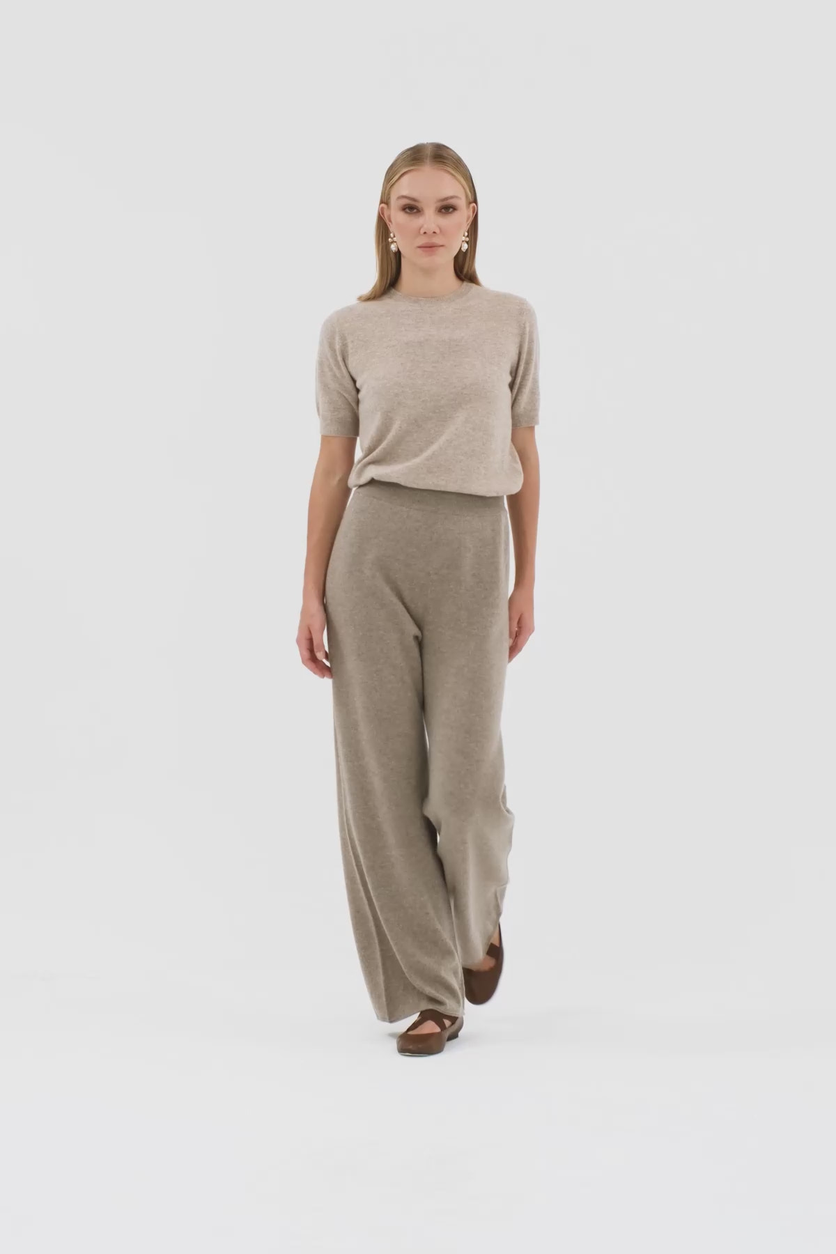 Beli Lastikli Geniş Paça Triko Pantolon