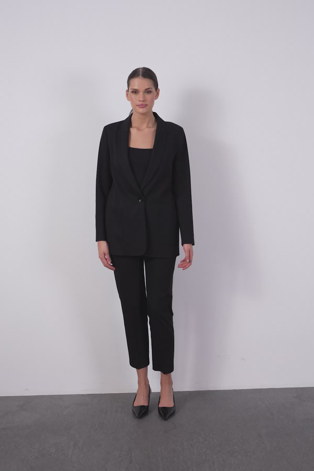 Beli Lastikli Havuç Pantolonlu Mono Kapamalı Takım