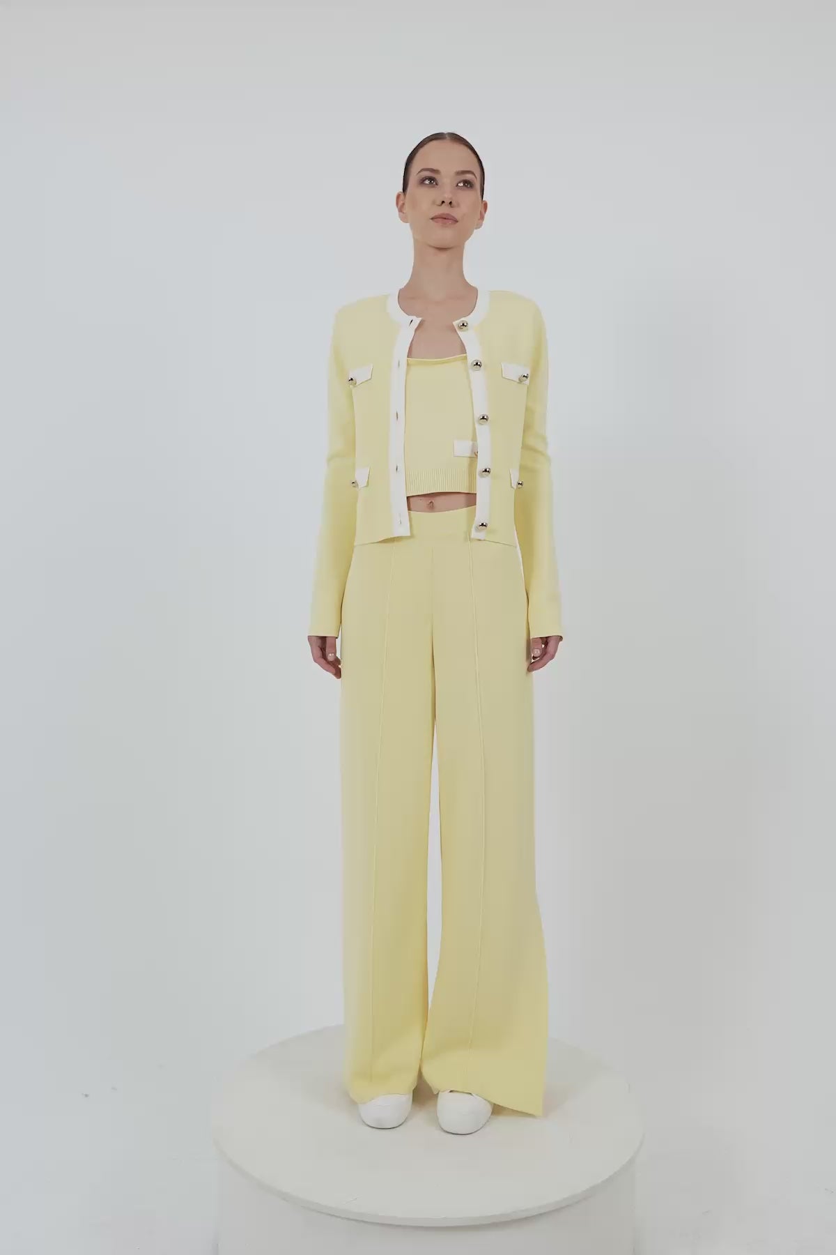 Beli Lastikli Paça Yanları Yırtmaçlı Triko Pantolon