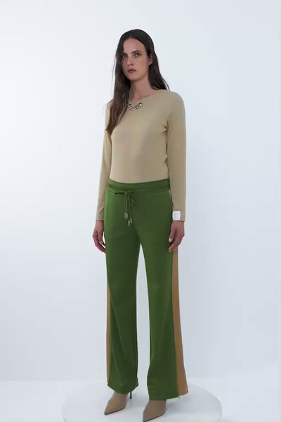 Beli Sabit Bağcık Detaylı Yanları Şeritli Pantolon