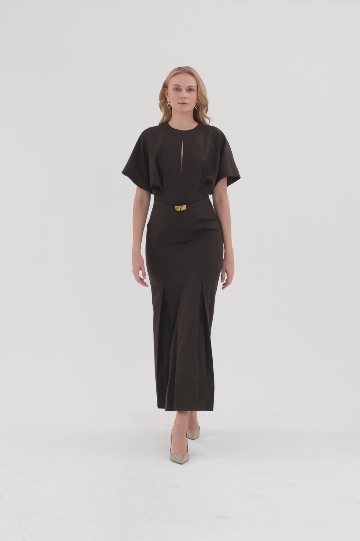 Bisiklet Yakalı Yarasa Kollu Gizli Fermuarlı Maxi Elbise