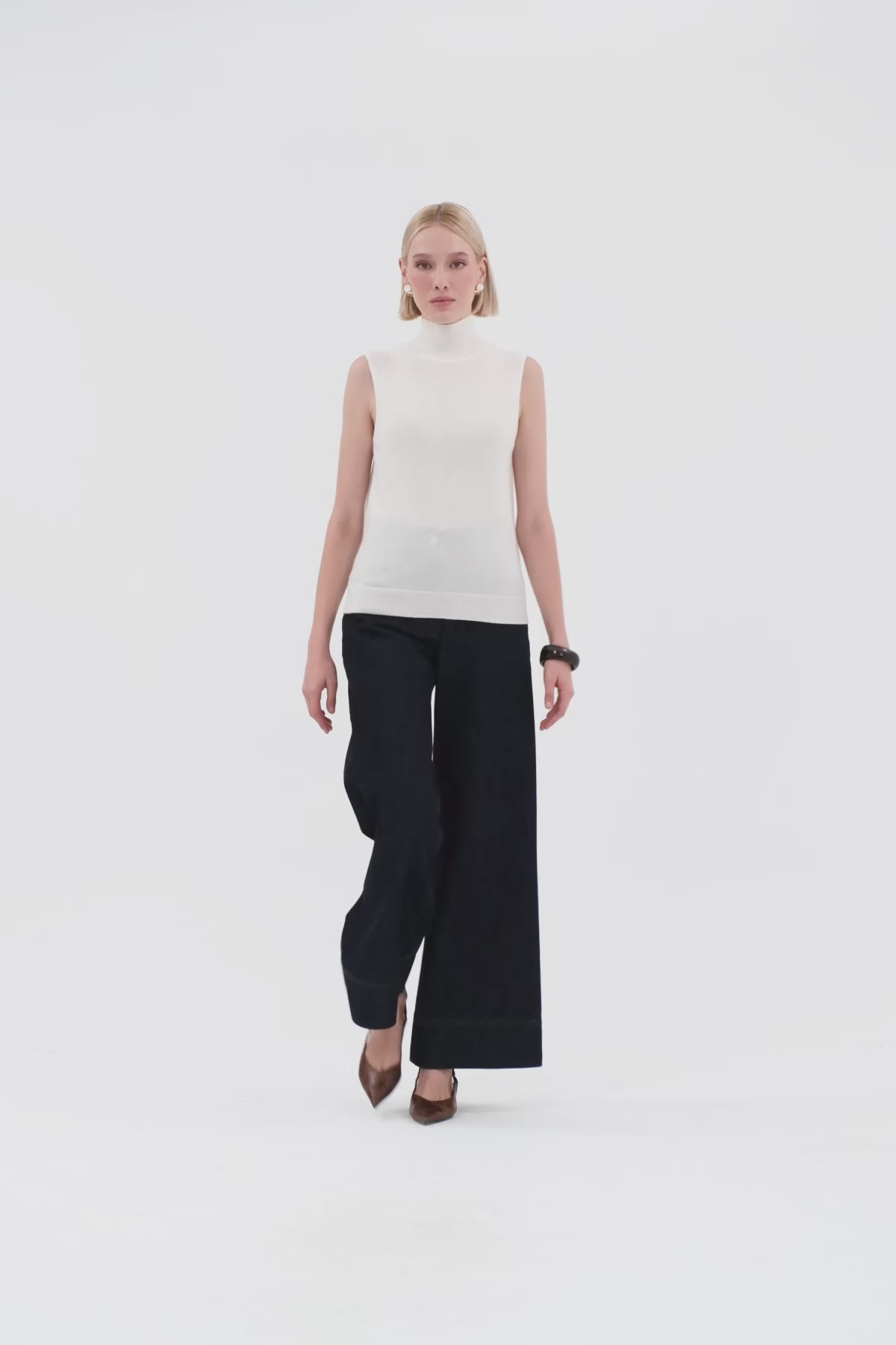 Boğazlı Sıfır Kollu Triko