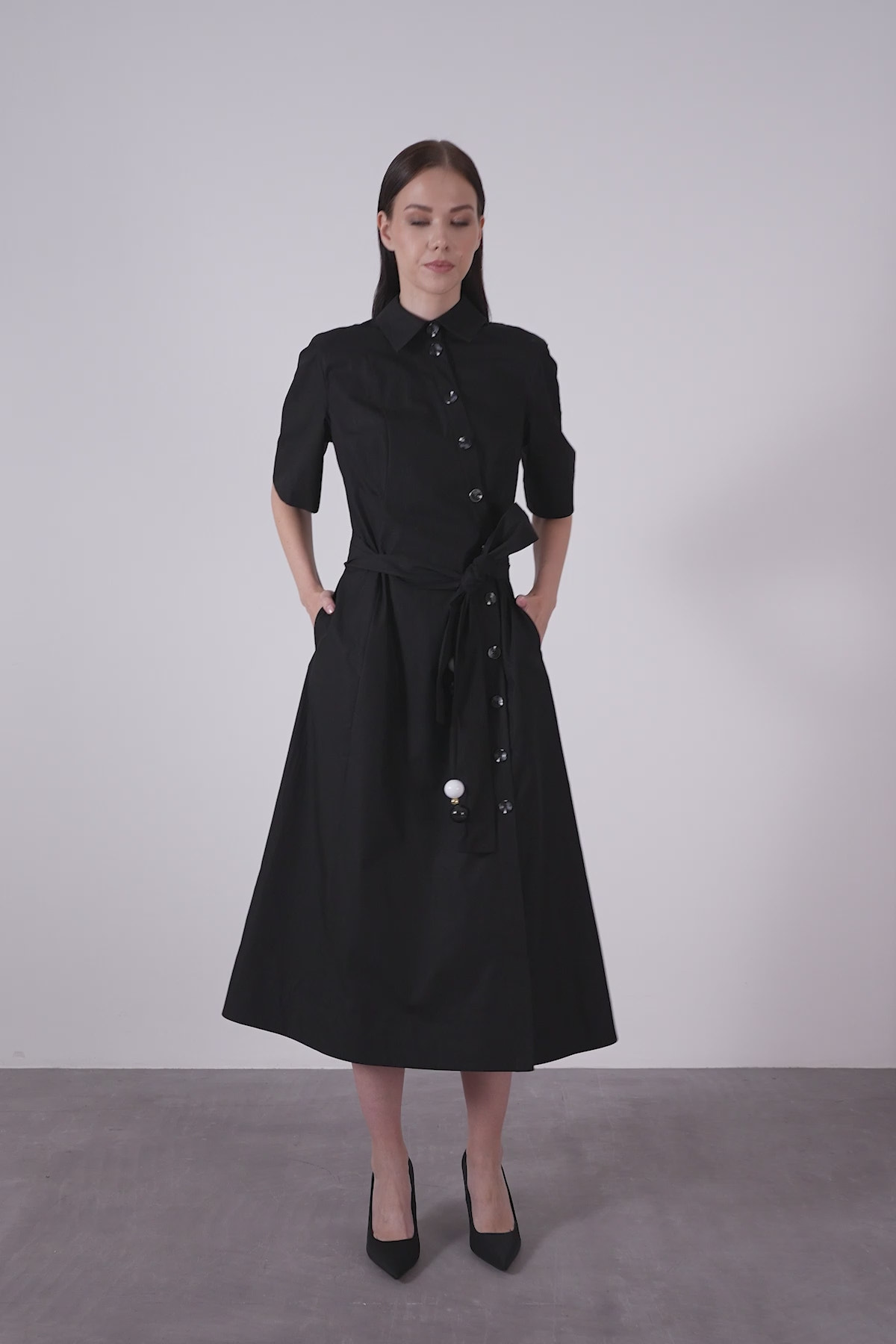 Boncuklu Kuşak Detaylı Kemik Düğmeli Midi Elbise
