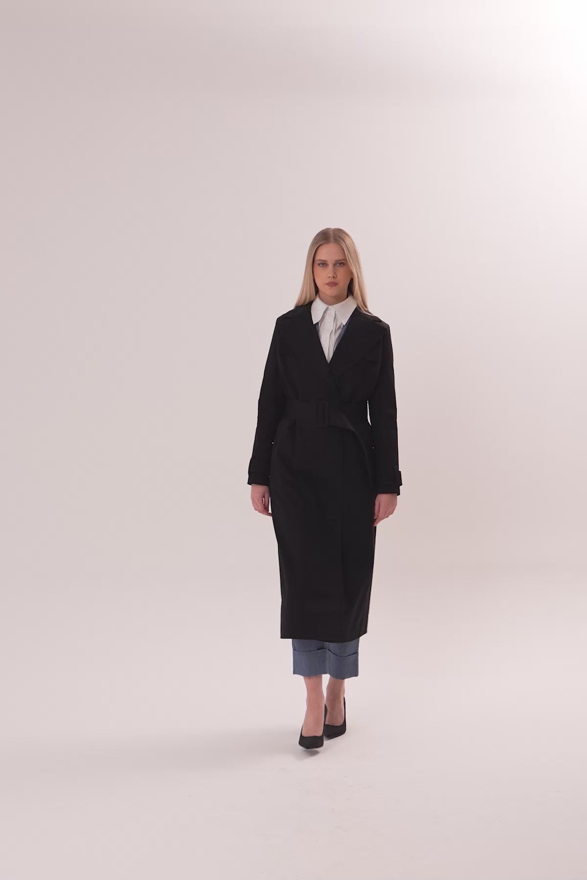 Ceket Yakalı Önü Kruvaze Çıtçıt Kapamalı Uzun Trençkot