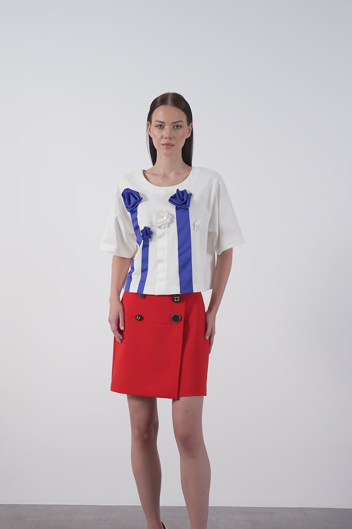 Çiçek Detaylı Arkası Fermuarlı Bluz