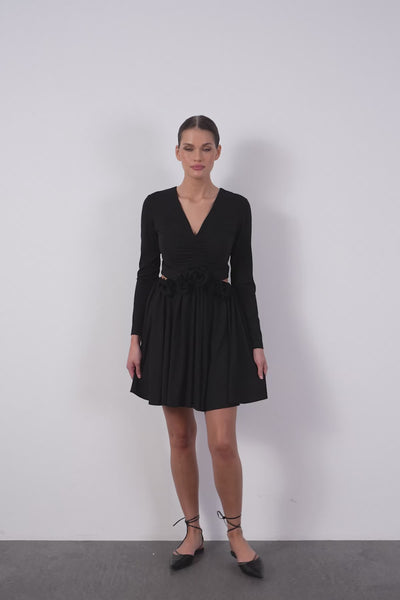 Çiçek Detaylı Beli Pencereli Elbise
