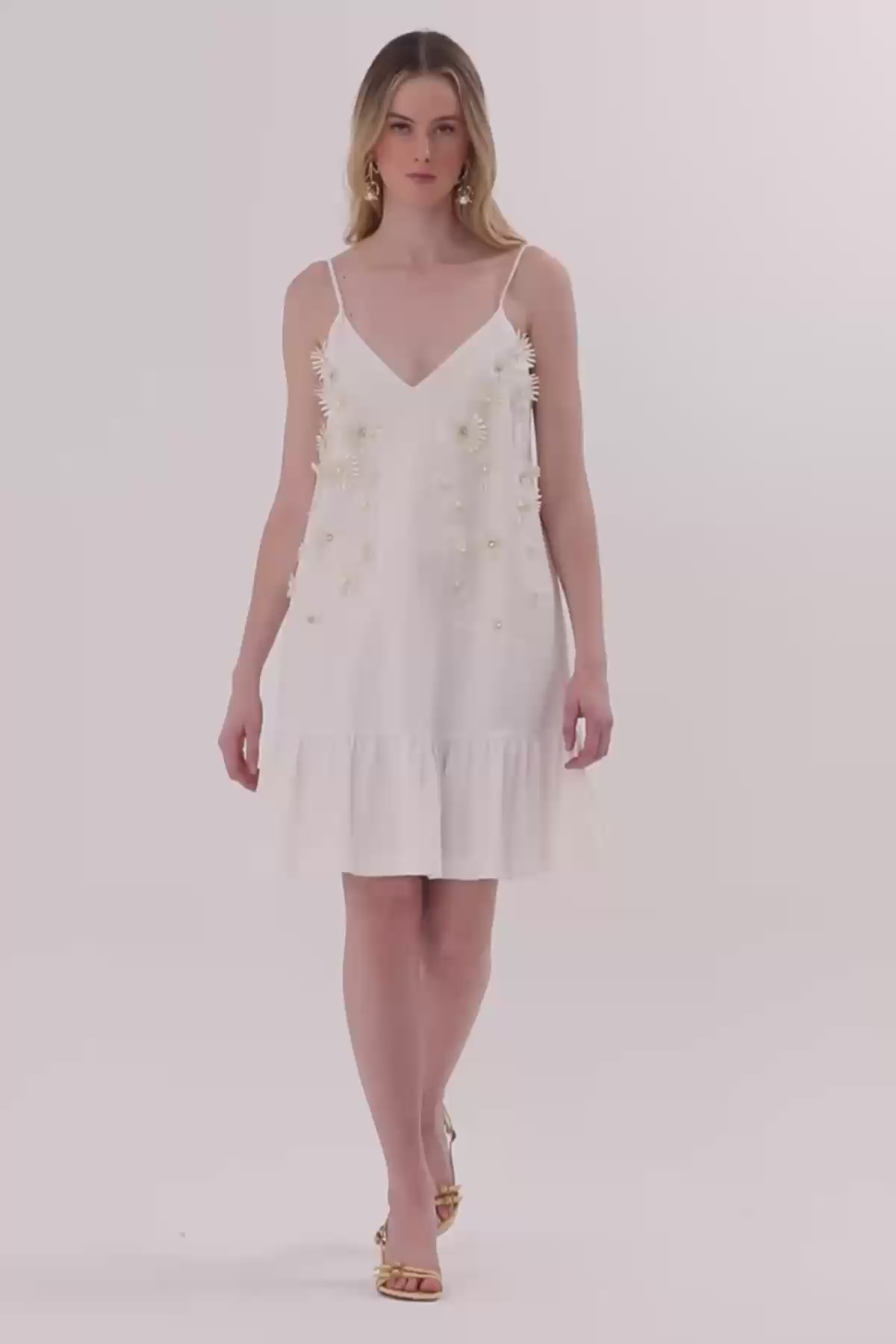 Çiçek Detaylı Volanlı Kısa Elbise